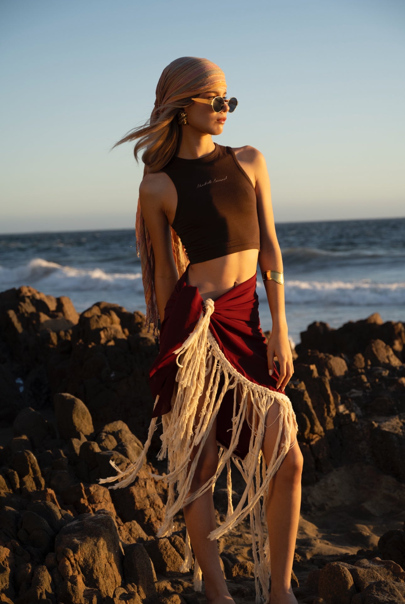 Confeccionado en una tela extra suave que fluye con cada paso, incorpora flecos de manta en los bordes que aportan textura, artesanía y carácter. Llévalo a la cintura, cajera o como tú prefieras—Ivelle se adapta a tu cuerpo y a tu manera de habitar el verano.